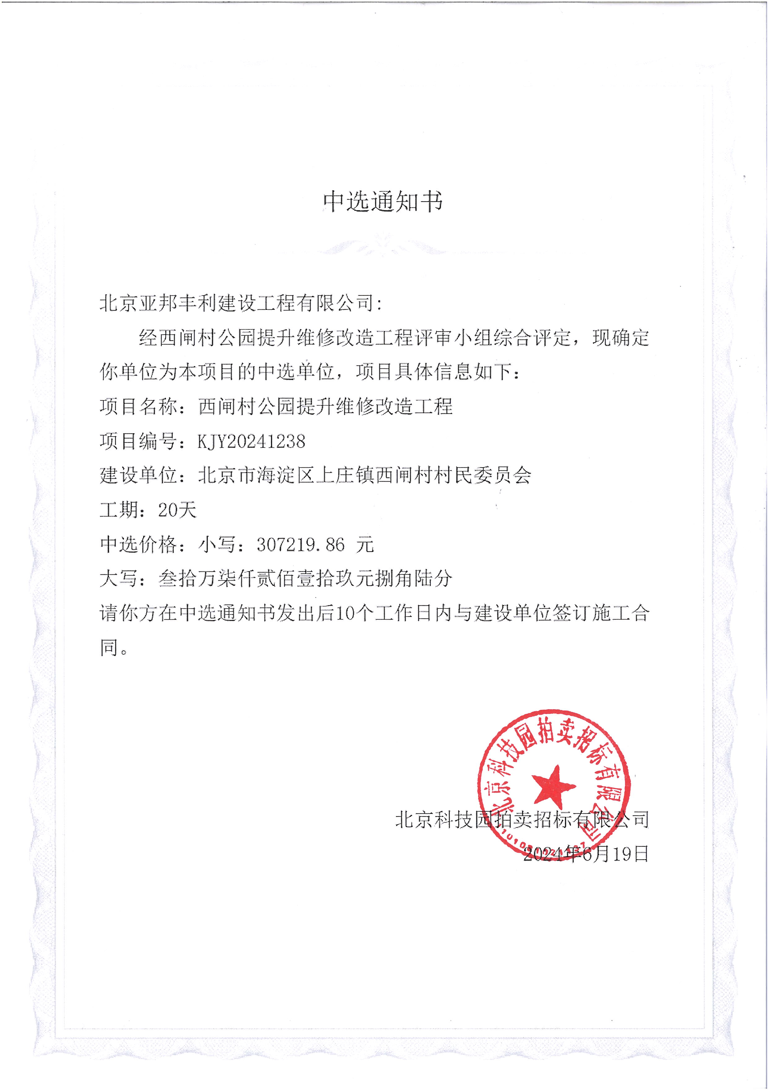 中選單位:北京亞邦豐利建設(shè)工程有限公司